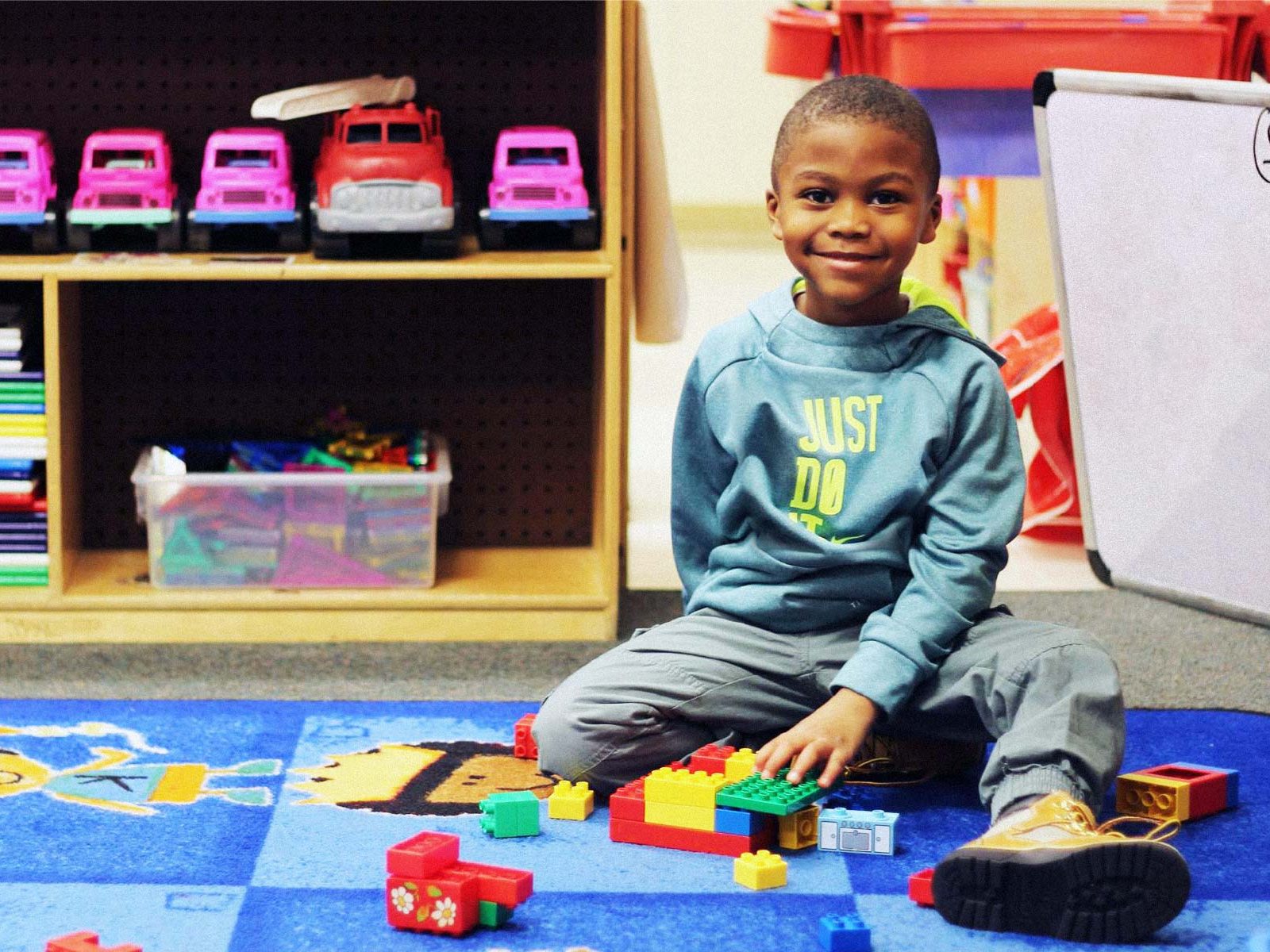Young Boy Plays With Legos in Classroom